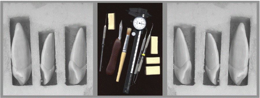 The six maxillary incisor teeth were carved from wax [12] (Figure 1). According to the dimensions outlined in dental anatomy textbook [13] (Table1).