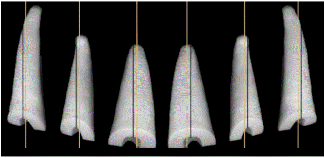 Figure 4b: When the cemento-enamel junction (CEJ) is aligned along the long axis, a diagonal formation becomes evident.
