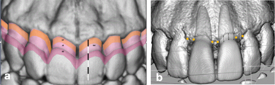 While CBCT currently offers only the bone topography, the soft tissue (interproximal papillae) can be anticipated as a mirror of the underlying bone; in a healthy state, they share the same characteristics of positive architecture (Figures 7a, 7b). Any alteration in bone architecture would also be reflected in the soft tissue.