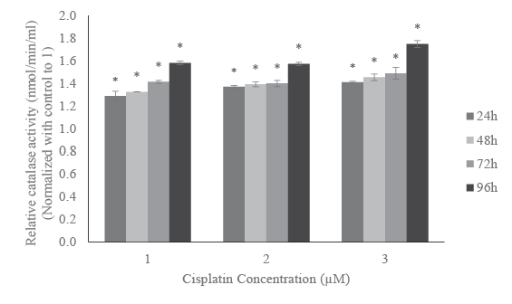 and catalase significantly increased in cisplatin-treated cells compared to