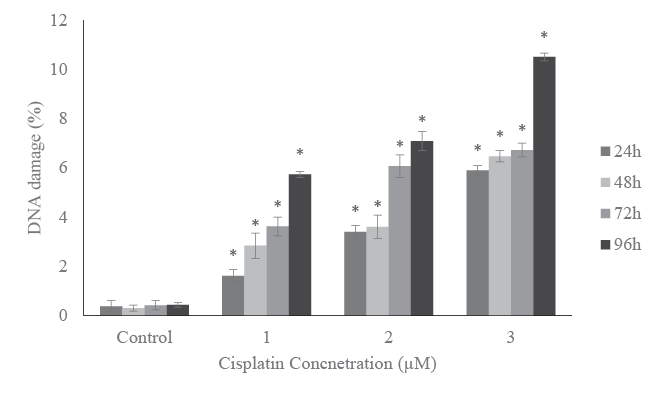 even at lowest dose of 1 µM. Also, cisplatin significantly induced DNA
