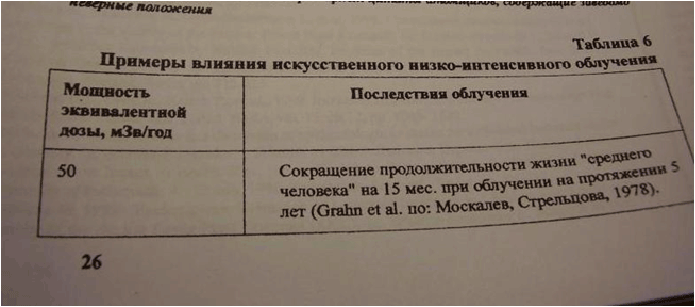With regard to the Volume [12], not much can be added to the previously published examples of incorrect citation etc. [56,58], left without comment in [57]. It should be added that the first author of the volume [18] applied misquoting also earlier. Figure 1 is a photograph from the book [61]. Translation of the bottom table: “Equivalent dose rate 50 mSv/year. Consequences of the exposure: decrease in the life duration of an ‘average human’ by 15 months after irradiation during 5 years (Grahn et al. [62] after Moskalev, Streltsova, 1978 [63])”. The article [62] is quoted second-hand, from a Russian publication [63]. Figure 2 is a copy from [63]. Translation of the bottom paragraph: “According to the calculations by D. Grahn, G.A. Sacher, R.A. Lea et al. [62] the radiation dose of 2, 5 Sv (i.e. 0,05 Sv yearly during 50 years of work, which today is the upper limit for occupational workers) received as chronic irradiation during a very long time, can cause reduction of life duration by 15 days for an average mouse aged 100 days and by approximately 15 months for an average human aged 20 years” [63]. This passage was misquoted in [61], while the key figure 50 was changed to 5, which created a wrong impression about complications of exposure to low dose low rate radiation. Figure 3 represents another example from the same book [61]. The table contains information about medical consequences of Chernobyl accident. Translation of the second line of the table (emphasis added): “Leukemia in infants 1987-1988. Increase in the number of cases in the contaminated territories: Wales and Scotland 3.3 times; Greece (0.2 mSv) 2.6 times; USA (10 mkSv) by 30% (Gibson et al., 1988 etc.) [64]”. Figure 4 represents a copy of the table from [64]. The statement about 3.3-time incidence increase of childhood leukemia in Wales and Scotland in the years 1987-88 can be related only to the first line of the table containing the following figures: 1971-80 (15 cases); 1981-86 (9 cases) and the year 1987 (6 cases) [64]. In [64], the figures were not discussed in connection with the Chernobyl accident, one year being obviously too short period for initiation of radiation-induced malignancy in humans. These examples demonstrate how inaccurate citation can create exaggerated impression about Chernobyl consequences.