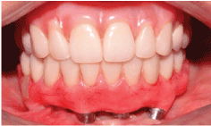 Figure 7: Clinical aspect showing the arrangement of the implants, reducing the cantilevers and the normal aspect of peri-implant soft tissue.