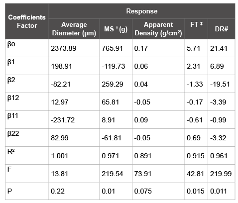 Table 3: Regression Coefficient of different response variables † Mechanical strength, ‡ Floating time. # Drug Release